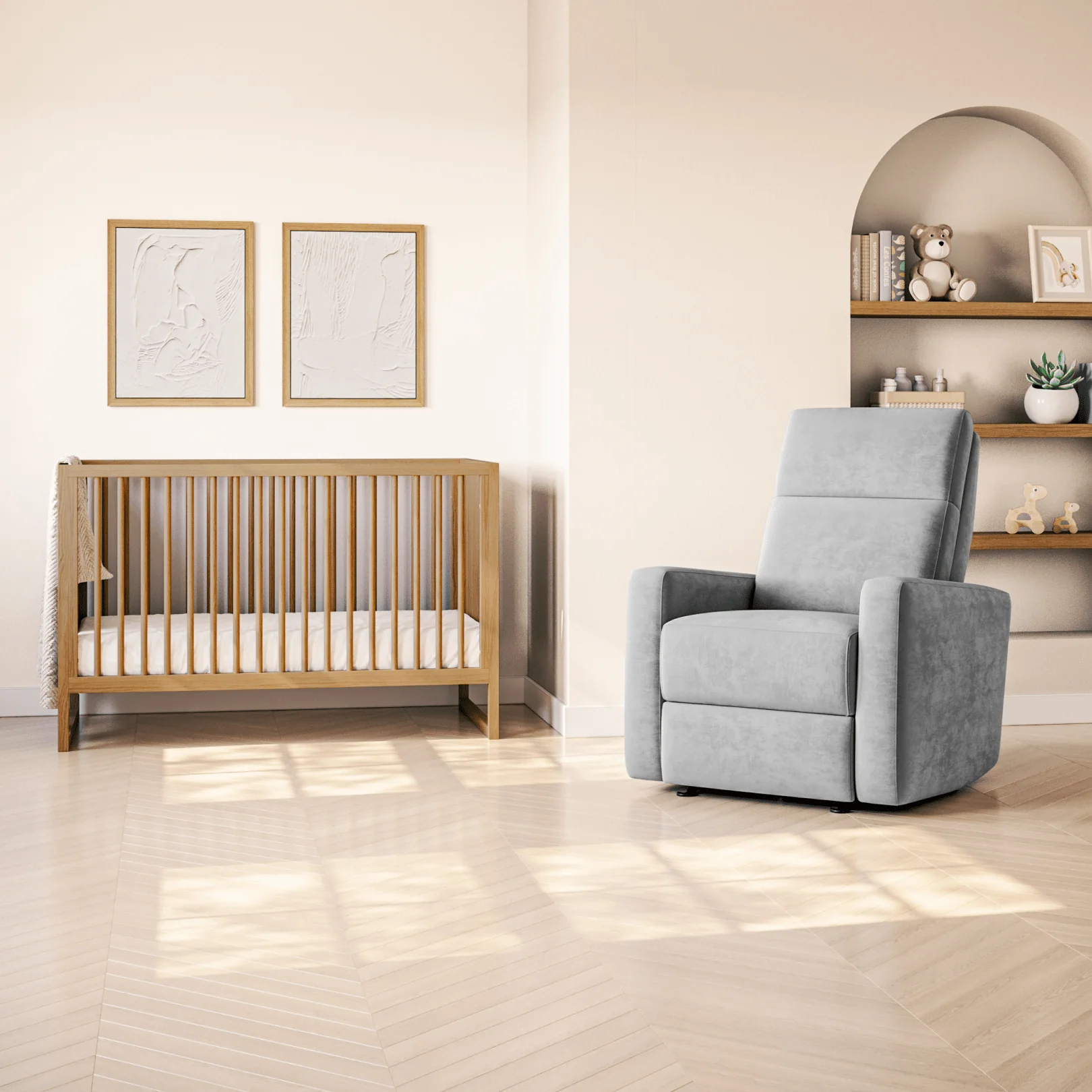 Say hello to ultimate comfort with our high-quality nursery glider. Designed with smooth power recline, adjustable headrest, and gentle glide, it's upholstered in stain-resistant fabric to ensure lasting comfort and durability for the years you need it most.